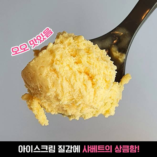 아이스크림 만 떠먹자마자 눈이 동그래지는 상큼함! 와우 +_+ 사각 사각하지 않은 부드러운 아이스크림 질감에 감귤 맛이 강하게 느껴지네요. 육안으로 보기엔 우유가 들어간 아이스크림 같아서 달고 느끼하지 않을까 생각했는데 식감과 맛의 반전에 칭찬 스티커 드립니다:)