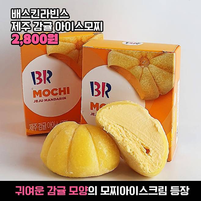 다양한 맛이 있었으면 좋겠다 생각하고 있던 찰나에 상큼한 제주감귤 의 맛과 모양을 재현한 제주감귤 아이스모찌가 출시되었다고 해서 얼른 배스킨라빈스 로 달려가서 리뷰하러 가져왔어요!