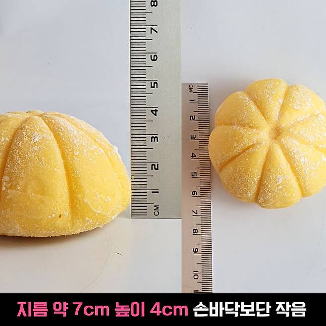 동글동글한 모양에 지름은 7cm 높이는 4cm로 손바닥 보다 살짝 작은 크기로 양은 그다지 많지 않네요. 세입이면 끝날듯한... (한 입당 약 930원...ㅋㅋ)