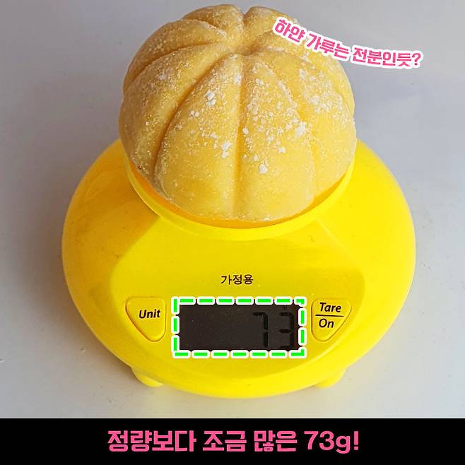 무게를 재보니 표시된 정량보다 5g 가량 많은 73g이었어요! 뽑기 성공! 배스킨라빈스 요즘 열일하네용.