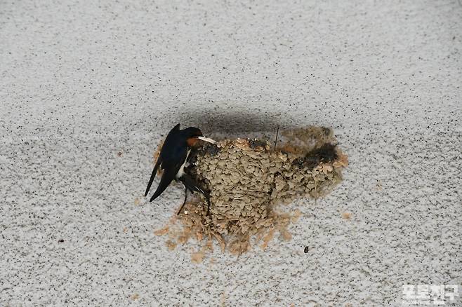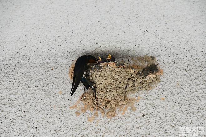 새끼를 육추 중인 제비는 옆에 지은 것으로 보아