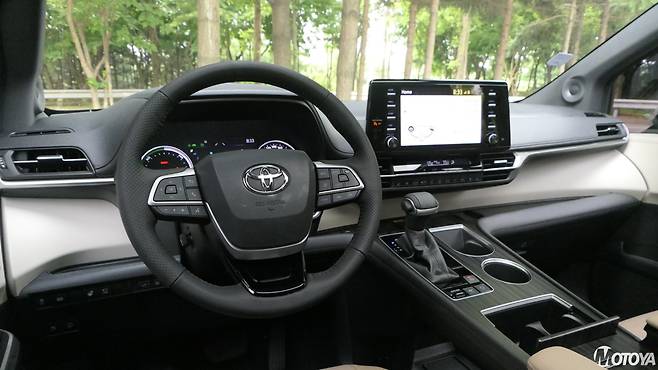 대시보드 둘레 역시 큰 변화를 겪었다. 기존의 시에나는 짐짓 상용차에 가까운 분위기의 대시보드를 가지고 있었던 반면, 새로운 시에나는 승용세단의 그것을 연상시키는 스타일의 대시보드를 갖췄다. 극단적인 수평기조를 따르는 대시보드 디자인은 기존의 시에나와는 달리, 승용 세단의 감각에 한층 가까워진 모습이다.