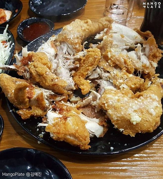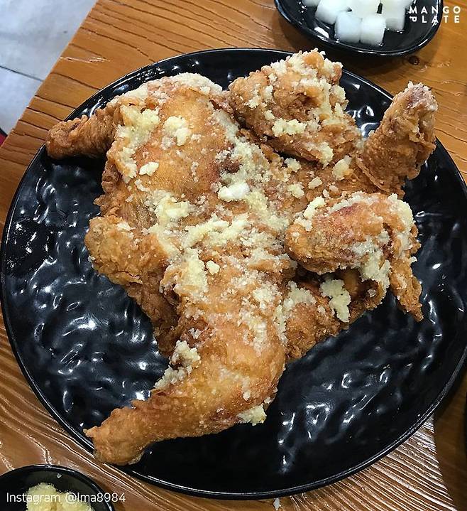 한 자리에서 36년 동안 전통을 이어오고 있는 순천의 명물 이색적인 마늘통닭집. 첨가물을 넣지 않은 다진 생마늘을 갓 튀긴 닭 위에 얹어내 통닭의 열로 마늘의 알싸함을 잡아주었는데요. 통닭은 테이블 위에서 먹기 좋게 찢어주는데 후라이드 치킨 특유의 느끼함을 알싸한 마늘로 감싸주어 1인 1닭을 하더라도 물리지 않고 먹을 수 있어요. 마늘기름장과 김치도 함께 나와 다양한 조합으로 즐길 수 있는 것도 또 하나의 매력이랍니다.