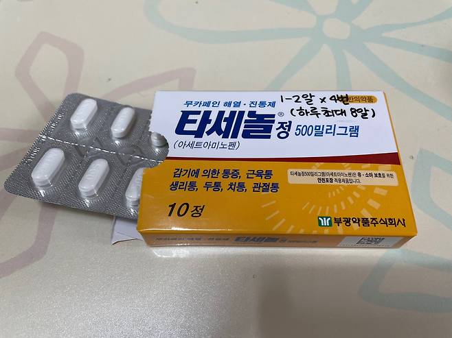 조금 낫다 싶었지만, 또 언제 열이 다시 오를지 몰라 해열진통제 2알을 추가로 복용했습니다.