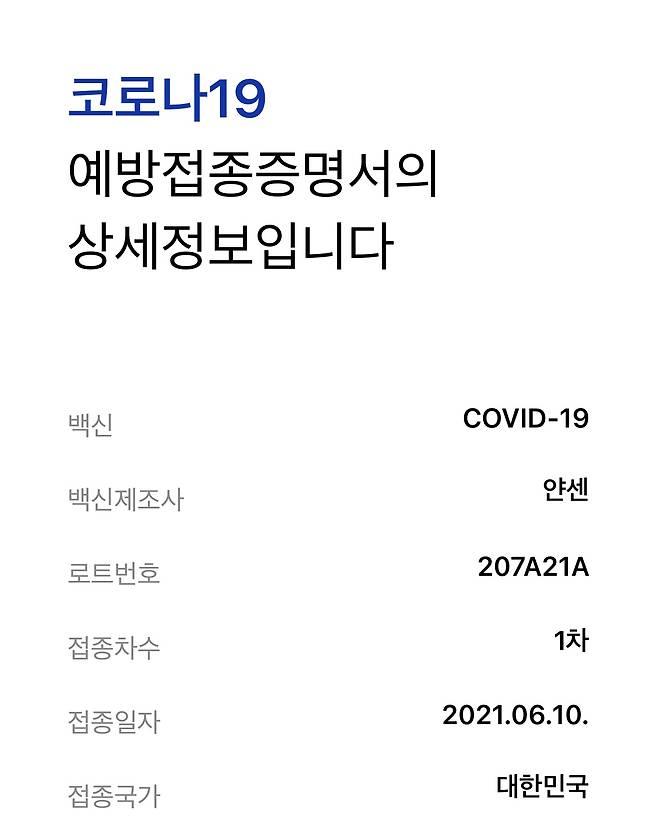 질병관리청 앱에 들어가 봤습니다. 본인 인증을 하니 접종증명서도 발급됐습니다.