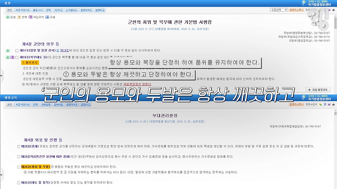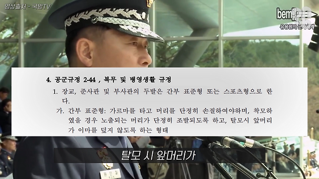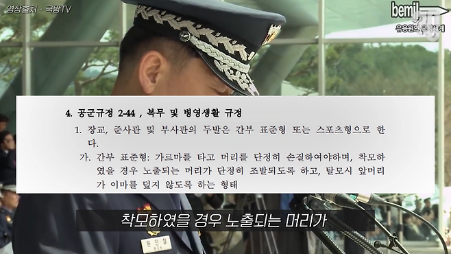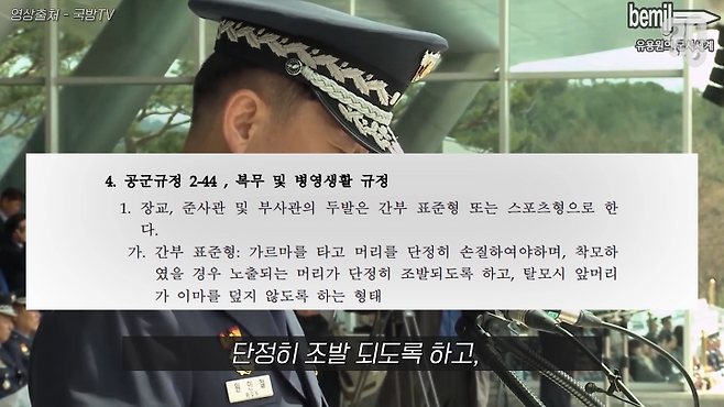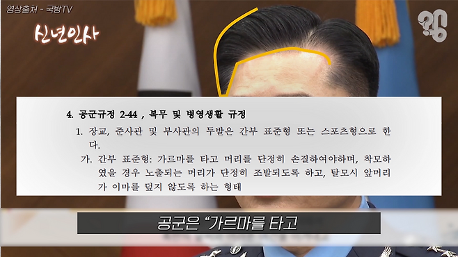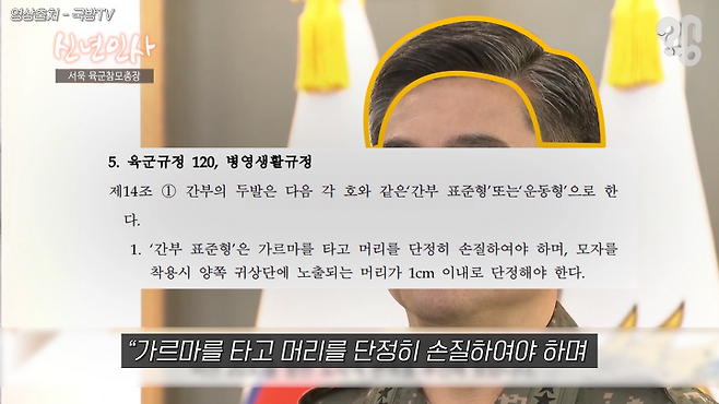 국방부 차원에서 두발규정을 정한 건 아니고요. 각 군의 임무 특성을 고려해서 선정을 하다 보니, 그 두발 관련 내용이 국방부 훈령이나 법령에 들어간 게 아니라 각 군 규정에 들어간 부분이 있죠.