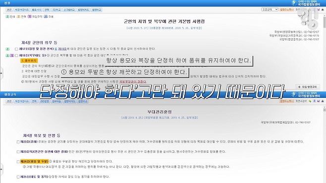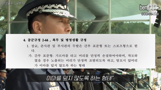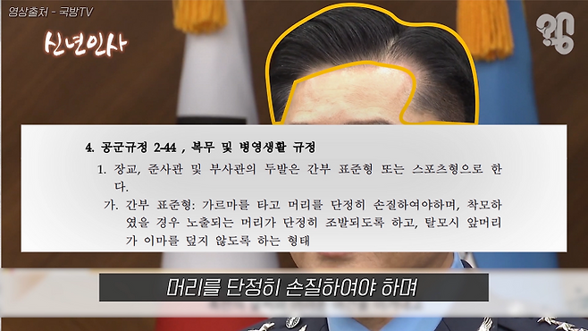국방부 차원에서 두발규정을 정한 건 아니고요. 각 군의 임무 특성을 고려해서 선정을 하다 보니, 그 두발 관련 내용이 국방부 훈령이나 법령에 들어간 게 아니라 각 군 규정에 들어간 부분이 있죠.