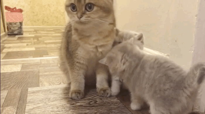 엄마를 독차지하고 싶던 아기 고양이는 마치 "내 엄마야!"라고 외치는 듯, 다가온 형제를 열심히 밀어내려 노력합니다. 어린 아기들도 형제끼리 이런 모습을 자주 보이는데, 고양이도 똑같군요!