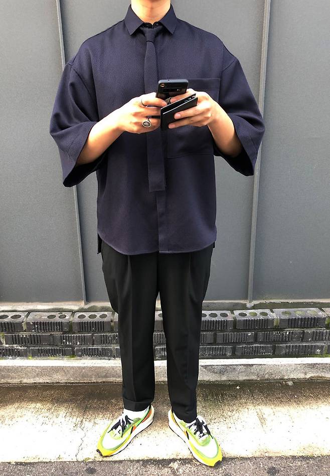 그리고 네이비는 좀 클래식한 무드로 입어봤는데 어때?
