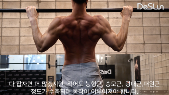 등을 제대로 사용하는 턱걸이는 적어도 능형근, 승모근, 광배근, 대원근 정도가 수축되며 동작이 이루어져야 합니다.
