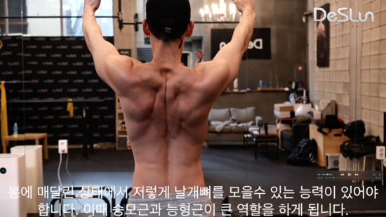등을 제대로 사용하는 턱걸이는 적어도 능형근, 승모근, 광배근, 대원근 정도가 수축되며 동작이 이루어져야 합니다.