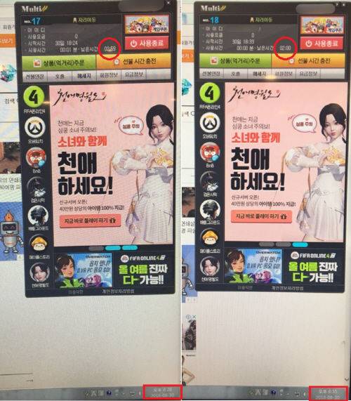 한 PC방에서 3시간을 충전해
