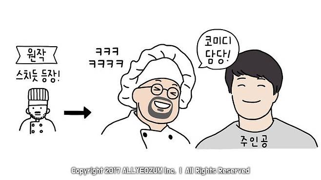 그리고 이 설정의 변화로 남자 주인공의 직장도 수영장으로 바뀌었습니다. 다른 하난, 원작에선 잠깐 등장했었던 제빵사가 주인공의 비중 있는 친구로 등장한다는 점입니다. 코미디까지 담당하면서 말이죠.