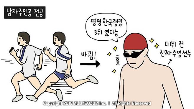 몇 가지 달라진 설정들은 있습니다. 우선, 남자 주인공의 전공이 육상에서 수영으로 바뀌었습니다. 데뷔 전 진짜 수영선수였던 소지섭과는 분명 더 잘 어울리는 설정이죠.