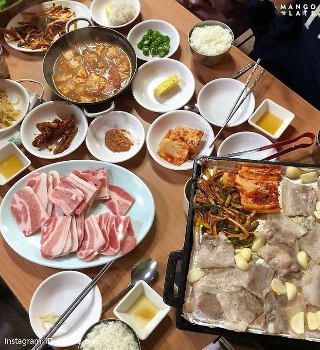 서오릉 여럿이 둘러앉을 수 있는 큼지막한 테이블에 구워내는 두툼한 삼겹살. 커다란 불판이 당구대 같다고 해 당구대 삼겹살로 불리는데요.