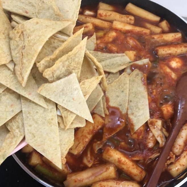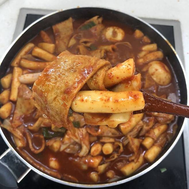 또 쌀떡, 밀떡 두 종류를 넣었지만 양념이 더 잘 스며드는 밀떡을 추천하는바! 여기서 좀 더 졸이면 분식집 떡볶이 맛을 잘 느낄 수 있을 거 같음!