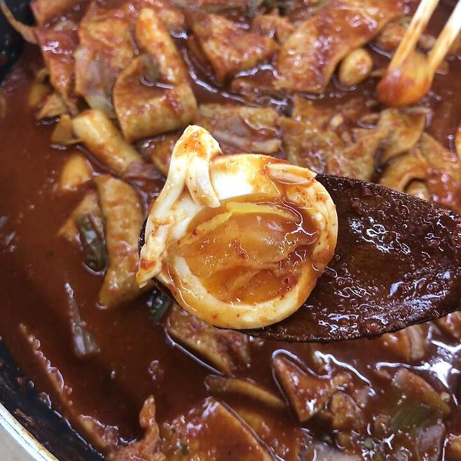 그리고 떡이 냄비에 눌어붙지 않게 잘 저어주다가 채소의 숨이 죽고 바글바글 끓기 시작하면 삶은 달걀과