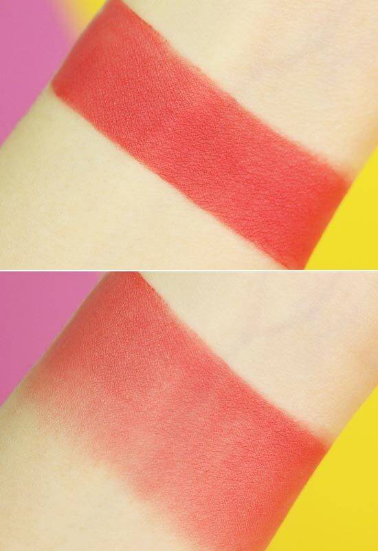 베이스를 바르지 않은 손등 위에서의 발색을 보세요.