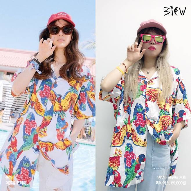 화려한 앵무새 패턴이 인상적인 셔츠와