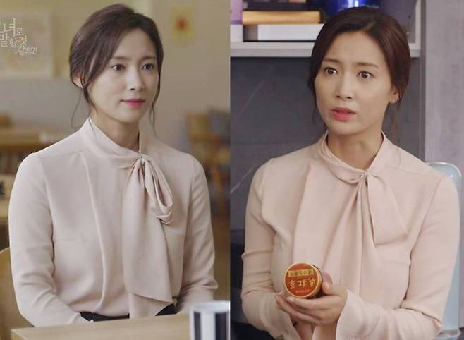 ↑사진 = 남상미가 착용한 '지고트' 블라우스 (버건디 컬러), 상품 바로가기 >>