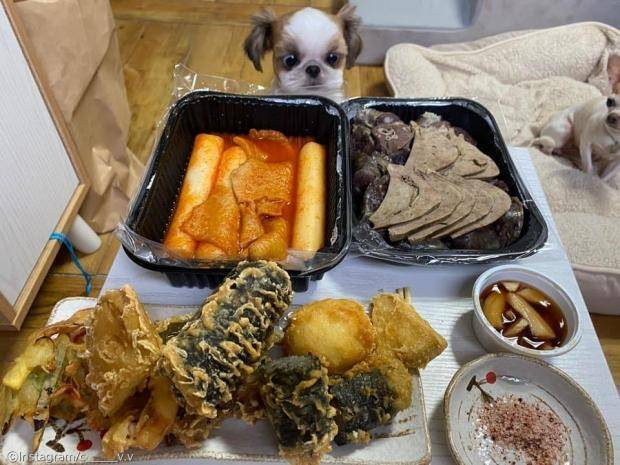 공개된 사진 속에는 푸짐한 분식 한상 앞에 앉아 있는 구찌의 모습이 담겼다.