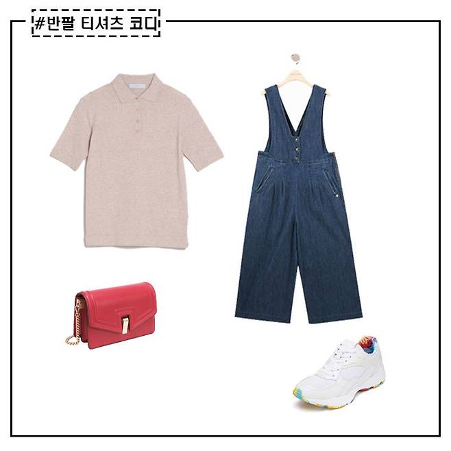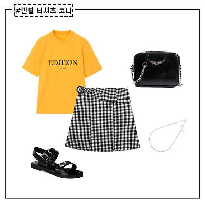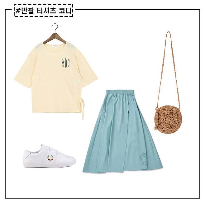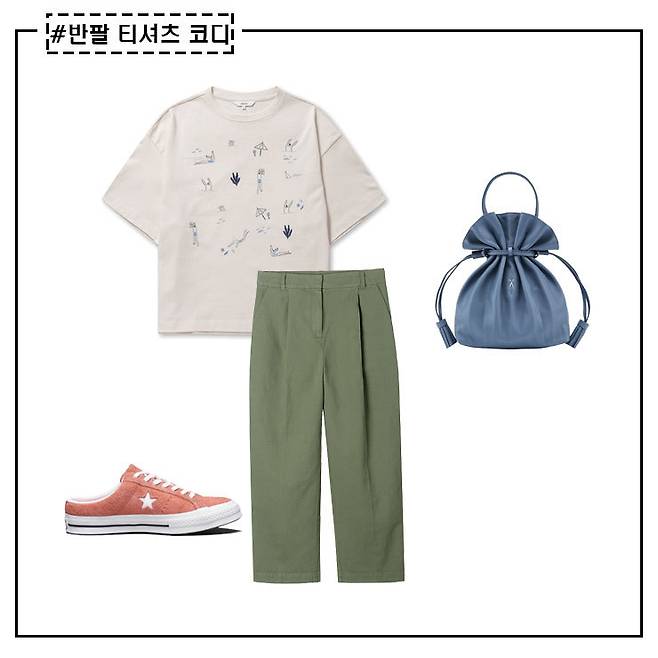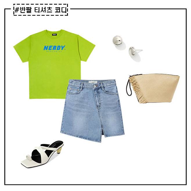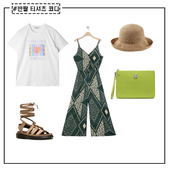 컬러 반팔티와 패턴 아이템의 조합은