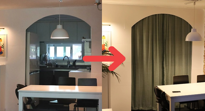 최근 저희 집 주방과 식사공간을 분리하기 위해 셀프로 아치형 가벽을 만들어보았는데요, 쉽지 않은 과정이었지만 마치고 나니 너무 예뻤던 결과물! 먼저, 비포애프터부터 보여드릴게요.