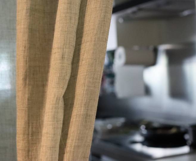 커튼을 살짝 걷으면 주방이 보여요.