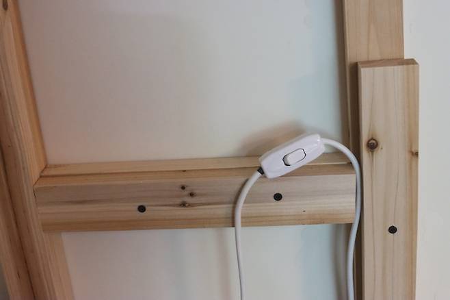 이렇게 가벽 틀에 약간의 틈을 주었고 여기로 전선이 통과되는 거죠.