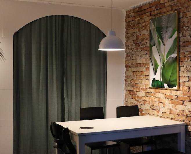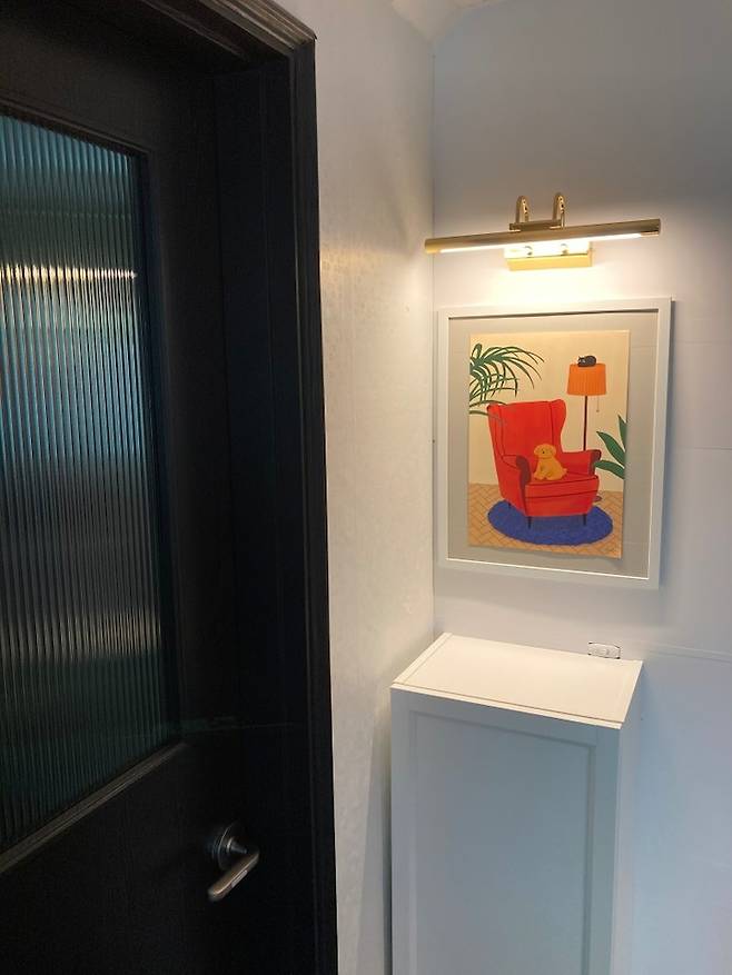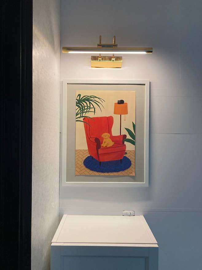 가벽의 우측에는 고급스러운 액자 조명을 달아주었어요.