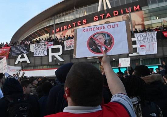 지난 24일 아스날의 에미레이츠 스타디움에서 에버튼과 프리미어리그 33라운드 경기를 앞두고 수천 명의 아스날 팬이 몰려나와 크뢴케의 퇴출을 요구하는 시위를 벌였다. 26일에는 티에리 앙리, 데니스 베르캄프, 패트릭 비에이라가 글로벌 음악 스트리밍 서비스 '스포티파이'의 다니엘 엑 대표와 함께 구단 인수를 제안했다고 알려졌다.