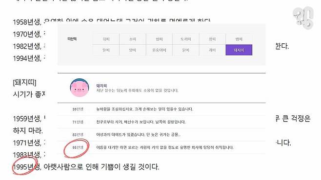 온라인 운세 제공업체 8곳을 찾았는데 이 중 3곳은 띠별 운세를 1995년생까지만 제공했고,