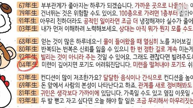 어디보자, 어디보자, 띠별 운세를 한 번 보자보자,