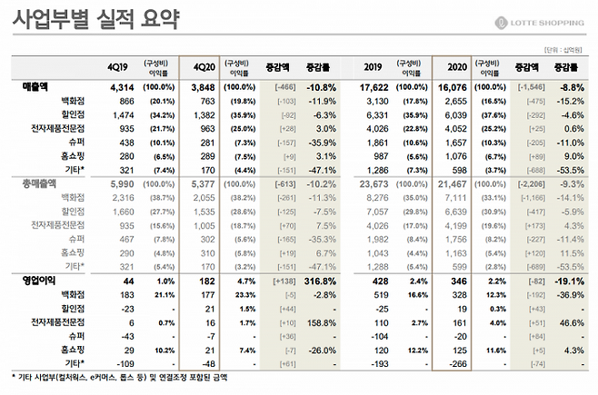 월마트가 온라인 강화 및 오프라인과의 연계를 통해 코로나19 상황에서도 실적을 개선한 것과 확연히 대비되는 대목이다. 백화점을 제외하고 할인점만 보면 지난해 영업이익은 190억원에 그쳤다. 슈퍼는 200억원의 손실을 냈다.