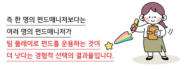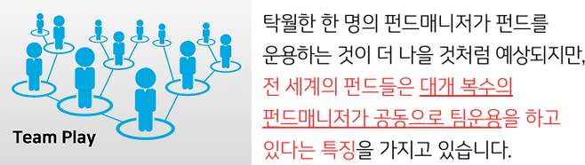 그런데 펀드를 운용하고 있는 펀드매니저의 구성을 보면, 한 사람이 운용하는 단독 운용 펀드보다는 대부분 복수의 펀드매니저가 운용하는 팀 운용 펀드가 압도적으로 많다는 점입니다.