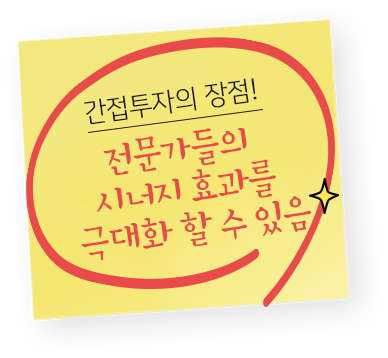 서로 서로 검증해주고, 크로스 체크해주고, 즉 전문가들의 시너지 효과를 극대화할 수 있다는 점이 간접투자의 장점입니다.