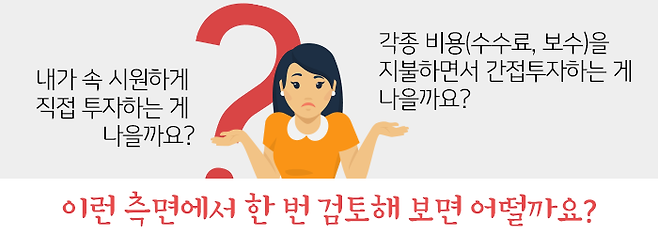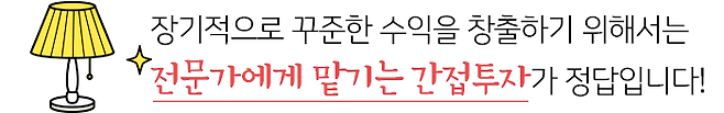 이상과 같이 여러 가지 차원에서 검토해보았을 때 개인투자자의 직접투자에는 한계가 있을 수 밖에 없죠. 그렇다면 어떻게 해야 할까요?