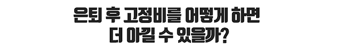 은퇴를 앞둔 A 씨는 오늘도 인터넷으로 ‘은퇴 후 고정비 아끼는 방법’을 검색하며 하루를 보낸다. 이러한 모습은 비단 A 씨만의 문제는 아닐 것이다. 매월 정기적으로 수입이 있던 은퇴 전의 삶과는 분명 다른 생활이 된다.