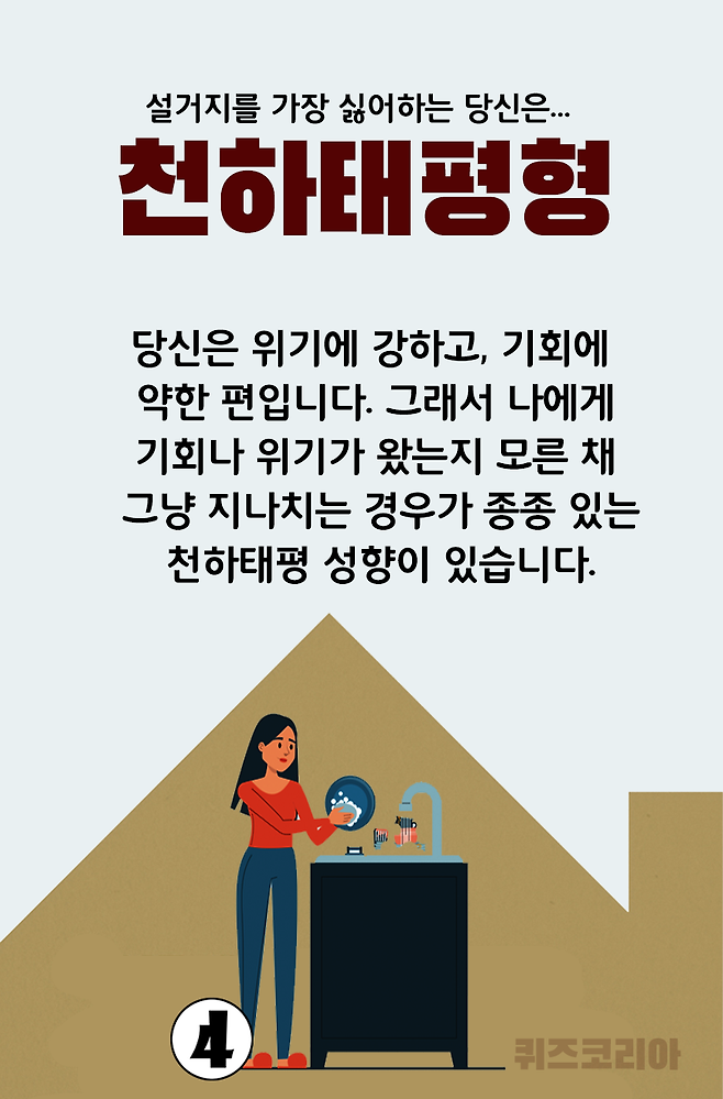 가장 하기 싫은 집안일로 알아보는 나의 기질