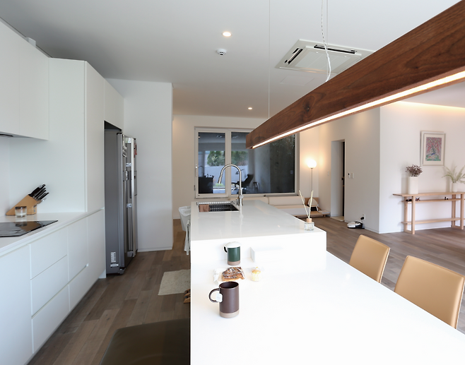 시공은 설계가 완료된 후 2년이 지나서야 진행했다. 시공사 역시 여러 업체와 상담을 했는데, 그중 아림주택건설 대표와 디자인실장에게 마음이 끌렸다고 한다. 꼼꼼하고 섬세한 성향에 믿음이 갔고, 젊은 감각을 유지하고 있다는 점도 마음에 들었다.