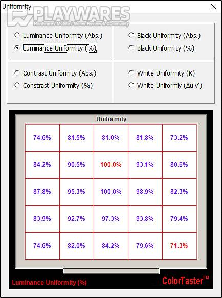 디스플레이 테스트는 KONICA MINOLTA사의 측정(Measurement) 장비 CA-310과 전용 소프트웨어 ColorTaster를 사용합니다. 일정 시간 화면 에이징을 선행하고 암실(Dark Room) 환경에서 측정을 진행하게 됩니다.
