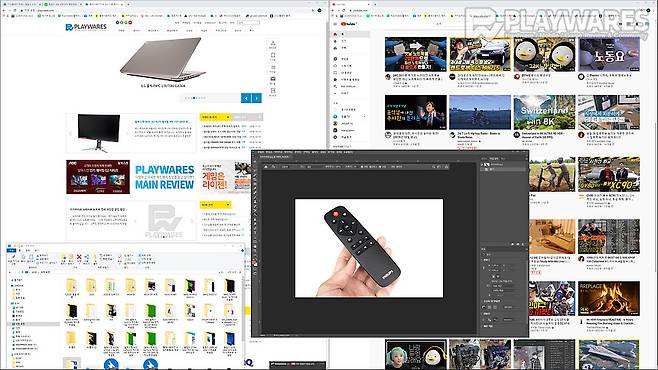 - 흔치 않은 몰입감으로 콘텐츠 감상 및 게이밍 환경을 지원하는 대화면 모니터, 옵션에는 MultiView 분할(2,3,4분할) 화면 모드