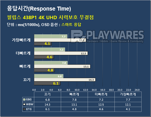 - 응답시간 수치는 테스트 환경 및 방식(GTG, MPRT)에 따라 차이가 있는 점