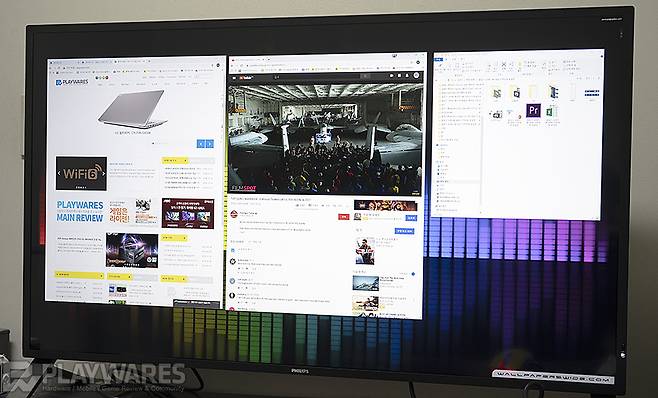 모니터 크기엔 정답이란 게 없죠. 어떤 목적에서든 화면 전체를 한 눈에 담기 편한 사이즈를 선호할 수도 있고 반대로 넓직한 화면을 원하는 경우로 선호도가 나뉘기 마련인데요. 이번 필립스 438P1 4K UHD 시력보호 무결점은 후자의 입장에서 가장 매력적인 제품이 될 수 있겠습니다. 대화면 트랜드에 매우 부합하는 43인치 디스플레이를 통해 상당한 수준으로 화면 몰입감을 높여줄 수 있는 게 우선이라면 이후부터는 4K UHD(Ultra-HD, 3840x2160) 해상도가 지원하는 고화질 환경에서 이미지나 영상 콘텐츠의 시청 및 작업 그리고 게이밍을 두루 즐길 수 있게 만든 제품이라는 게 큰 메리트라 보여집니다. 대화면 구조를 적극 활용할 수 있게 MultiView(PBP/PIP) 모드를 활용할 수 있게 만든 점 또한 체크해 두면 좋겠고요. 일반 모니터와 같은 사용도 가능하지만 일정 거리를 둔 상태에서도 콘텐츠 감상이나 게임을 즐기는 환경에 충분히 대응할 수 있게 제작된 대화면 모니터라는 게 매력이 아닐까 합니다.