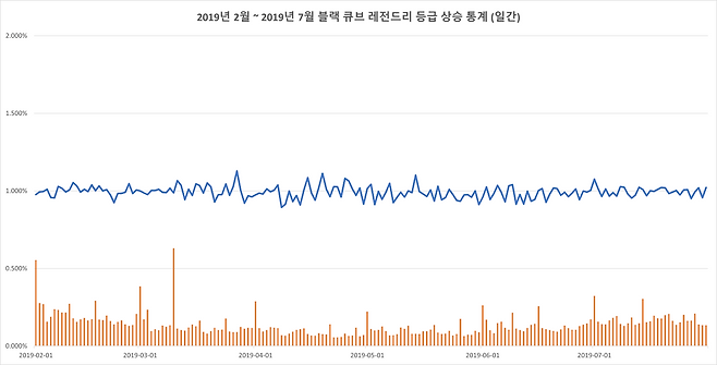 한편, 강원기 디렉터는 추가 공지를 통해 적절하지 못한 용어 사용에 대한 사죄와 함께 일 단위 블랙 큐브 레전드리 등급 상승 통계 자료를 공개했다.