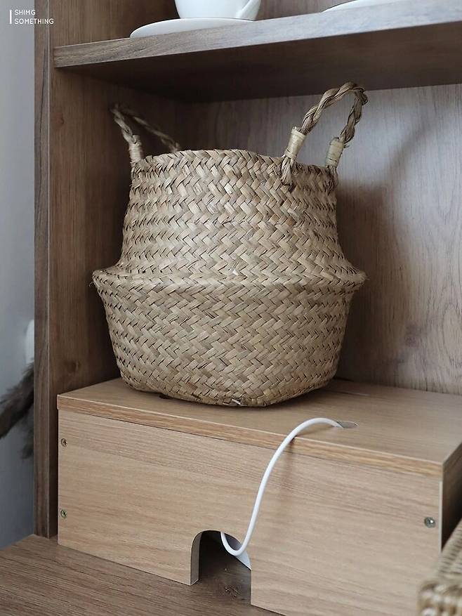 우드 컨셉으로 꾸민 홈카페 분위기에 맞춰 멀티탭 정리함도 우드로 통일했더니 눈에 거슬리지 않아 더욱 마음에 들어요.