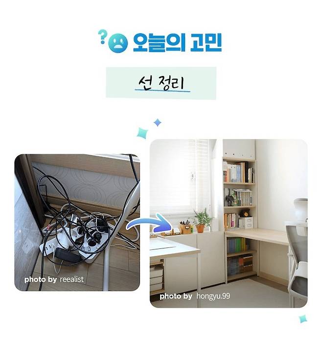 "집을 꾸미려고 하는데 늘어진 전선들을 어떻게 정리해야 할지 모르겠어요. 예쁜 집들 보면 전선 같은 거 안 보이던데... 다들 어떻게 하는 걸까요?"