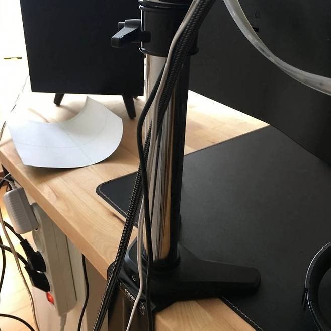 고개를 한껏 숙여 아래에서 바라봐야만 숨겨진 선들을 발견할 수 있어요. 컴퓨터 선 정리에 활용해보세요!