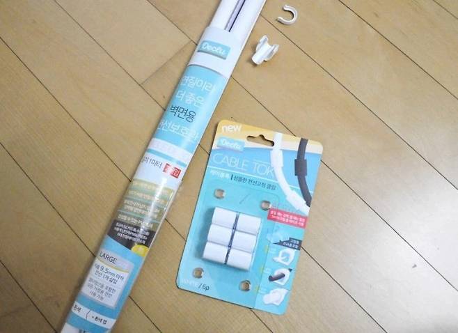 준비물은 다 파는 가게나 온라인 몰에서 쉽게 구할 수 있는 테이프식 후크와 케이블 클립이랍니다.