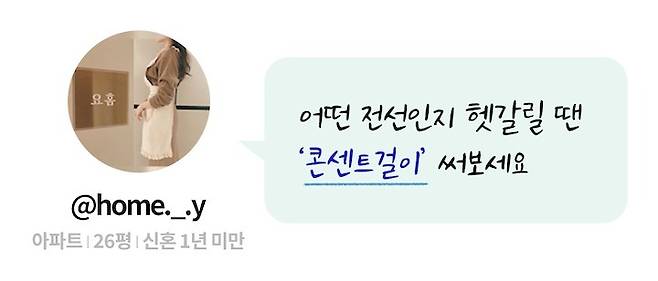 저희 집도 여기저기 지저분하게 섞여 있는 콘센트 대잔치랍니다. 그래서 선 정리도 할 겸, 어떤 콘센트인지 한 눈에 알아볼 수 있도록 '콘센트 걸이'를 사용하고 있어요!